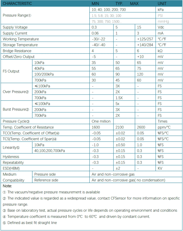 The XGZP160 pressure sensor is intended for using with non-corrosive gas or air. It is highly prohibited to choke the side of pressure diaphragm during actual application. Please consult CFSensor if a pressure medium other then air is to be used.