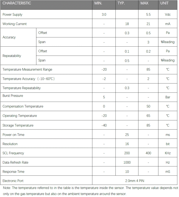 XGZP6810D is a prefect silicon pressure sensor offering a ratiometric digital data(I2C interface) for reading differential pressure over the specified full scale pressure span.