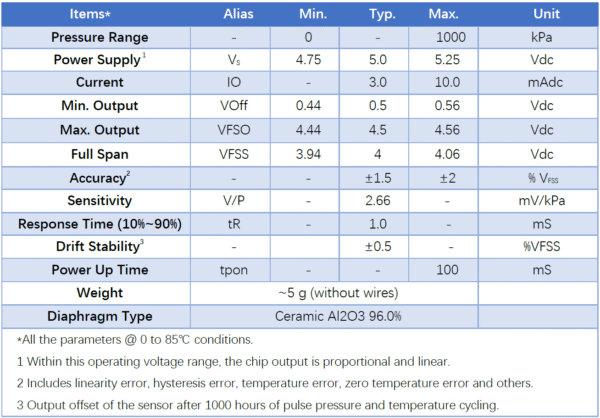 Piezoresistive ceramic pressure transducer